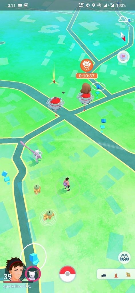 تصویر فعلی از Pokémon GO. یک نبرد Raid در بدنسازی در حال انجام است ، اما فرد باید از لحاظ جسمی به آنجا برسد تا در آن شرکت کند. به همین ترتیب ، فرد برای دریافت موارد بازی باید به صورت جسمی به Pokéstops برسد.
