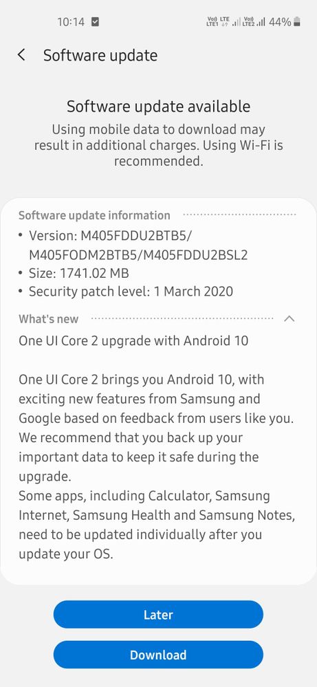 این به روزرسانی دارای 1.7 گیگابایت است و دارای نسخه M405FDDU2BTB5 است. این شامل تکه های امنیتی مارس 2020 نیز می باشد. می توانید برای بررسی در Galaxy M40 خود به تنظیمات> به روزرسانی نرم افزار بروید. اگرچه به روزرسانی تلفنی که حتی یک سال از آن گذشته نباشد ، کار بزرگی نیست ، اما گاهی اوقات تلفن های بودجه در کنار جاده کنار می روند ، بنابراین ما خوشحالیم که شاهد هستیم سامسونگ گوشی دیگری را به روز می کند.