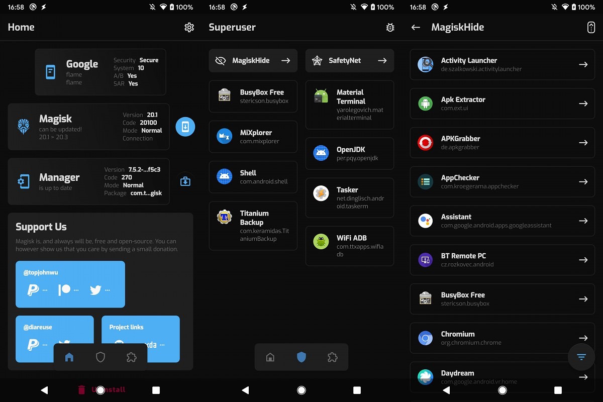 اکنون ، حتی اگرچه فکر می کنم مدیر Magisk به شدت نیاز به طراحی مجدد دارد ، اما در مورد UI جدید شکایات دارم. به عنوان مثال ، در فعالیت اصلی ، در واقع چیزهای آموزنده ای مانند نام بسته ها و شماره نسخه ها فقط نیمی از عرض موجود را می گیرند ، که در بعضی موارد کافی نیست. من همچنین ایده ایجاد صفحه جداگانه برای وضعیت SafetyNet را دوست ندارم. با این وجود ، من همیشه از اجرای اصول طراحی مدرن در برنامه های مفید استقبال می کنم. برخی گزینه های سفارشی سازی مانند امکان تغییر اندازه ستون شبکه و رنگ اصلی موضوع وجود دارد.