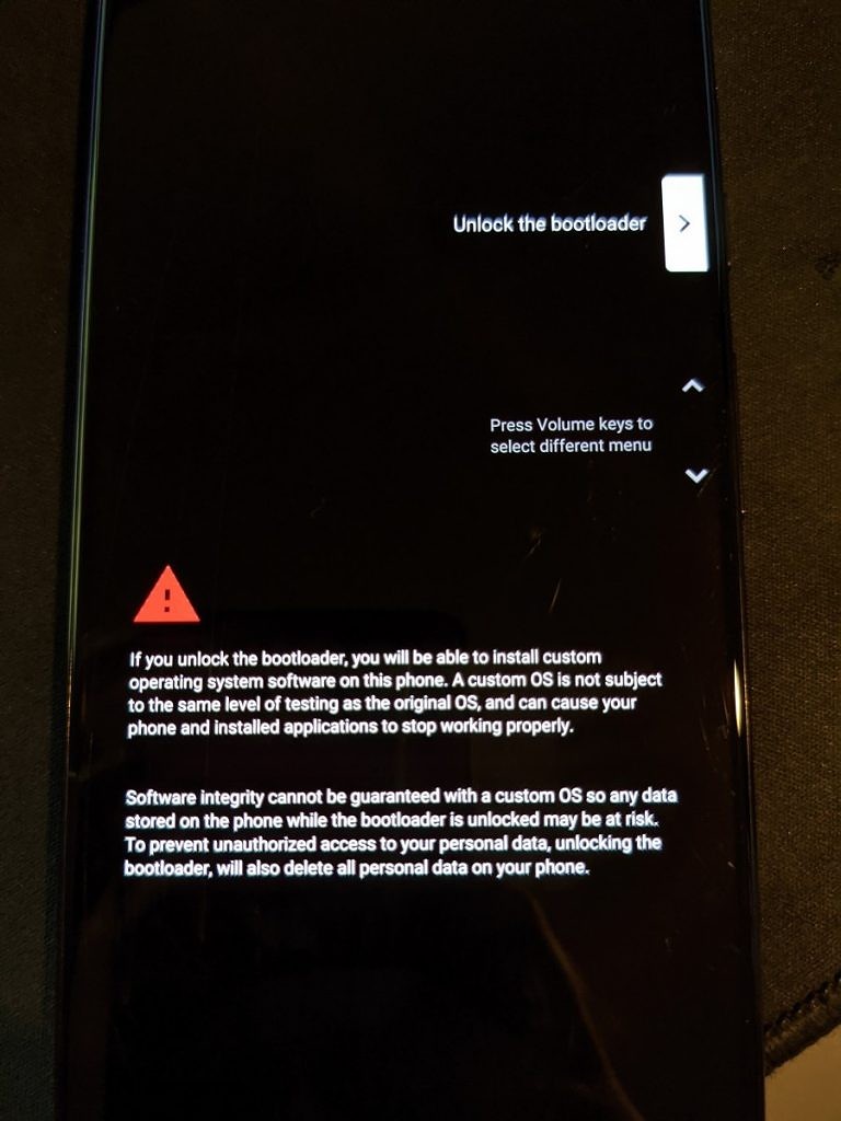 صفحه ای را مشاهده خواهید کرد که به شما بگوید که قصد دارید روند باز کردن قفل bootloader را شروع کنید. برای پذیرش از دکمه میزان صدا استفاده کنید و از دکمه پاور استفاده کنید. مجدداً ، این داده های موجود در تلفن شما را پاک می کند ، بنابراین اطمینان حاصل کنید که از داده های خود قبل از ادامه نسخه پشتیبان تهیه کرده اید.