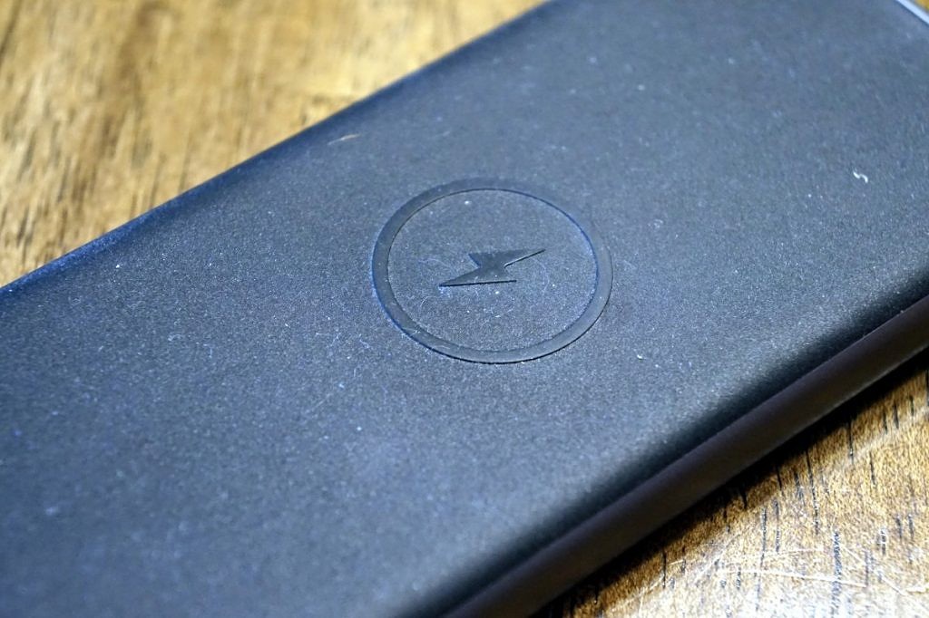 بالای بسته باتری در آن پوشانده شده است لاستیک بسیار براق اگر نماد چراغ برق به اندازه کافی سرنخ ندارد ، در اینجا تلفن خود را برای شارژ بی سیم قرار می دهید. این لاستیک کار بسیار خوبی را برای اطمینان از اینکه تلفن شما در موقعیت صحیح قرار دارد انجام می دهد ، اما همچنین یک آهنربای غبار عظیم است. فکر نمی کنم تاکنون از محصولی استفاده کرده ام که به اندازه این پاوربانک لاستیکی گرد و غبار جمع کند.