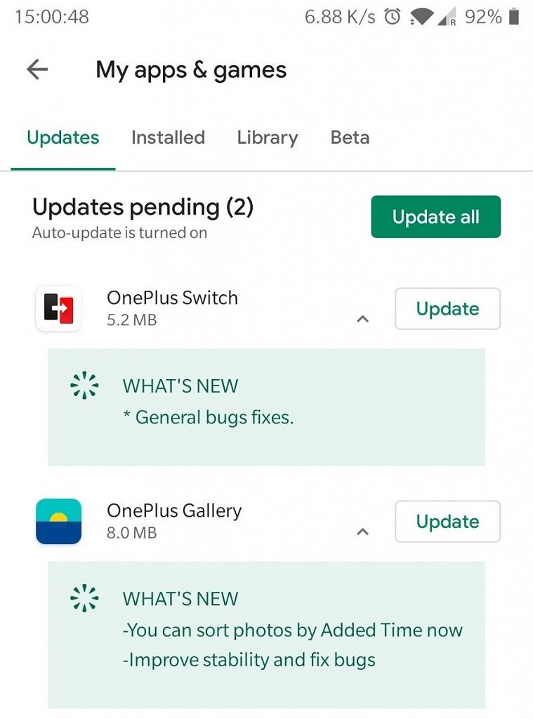این به روزرسانی ، که با شماره 3.7.19 ادامه می یابد ، اکنون از طریق Google Play Store به عنوان یک به روزرسانی در برنامه فعلی OnePlus Gallery اجرا می شود ، بنابراین اگر دستگاه OnePlus شما آخرین نسخه از OxygenOS و OnePlus Gallery را دارد ، شما باید خیلی زود آن را در دستگاه شما دریافت کند. اگر به دلایلی ، در دستگاه شما ظاهر نمی شود ، پس از دریافت نسخه جدید OxygenOS ، به جدیدترین نسخه باید به دستگاه شما بیاید.