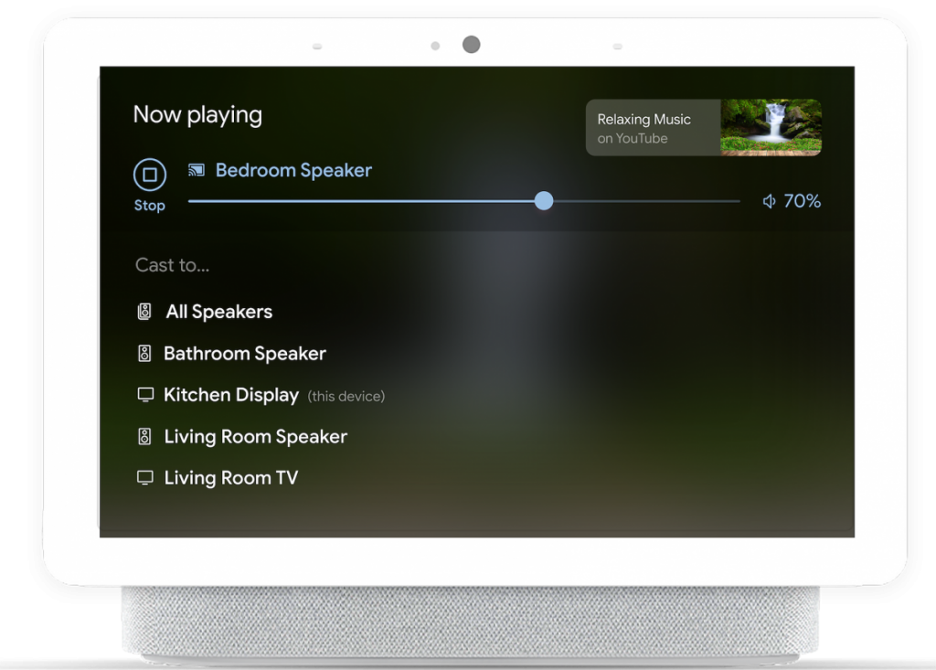 در این اطلاعیه همچنین شامل جلد هنری ، اطلاعات اولیه و کنترل های اساسی برای مکث ، جست و خیز ، یا بازگشت است. همچنین می توانید موارد زیر را در هر دستگاه پخش کننده جداگانه از Nest Hub خود کنترل کنید: